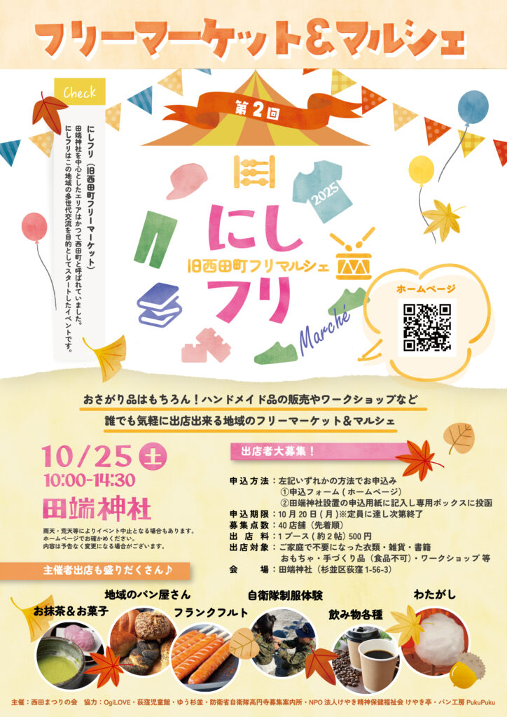※当ブースの売上はにしフリの運営及び秋祭りで使っている「子ども山車」や「御神輿」の保存修繕費などに充てられます。