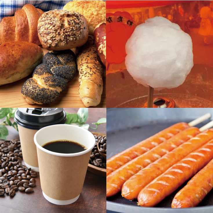 杉並区内の手作りパン屋さんによる、こだわりのパン各種をはじめ、香り高い入れたてのホットコーヒー、ジューシーなあつあつフランクフルト、ふわふわの綿菓子もご用意しています🍭