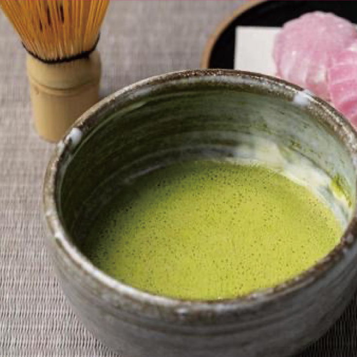 社務所内の和室では、立礼(椅子でのおもてなし)による本格的なお抹茶と和菓子のセットをお楽しみいただけます。